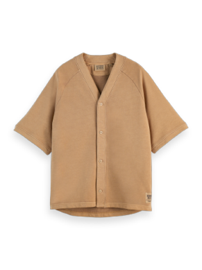 The Scotch & Soda Baseball Sweater Shirt in 'Desert Sand' offers a perfect blend of laid-back comfort and timeless style. This versatile piece is designed with a classic baseball-inspired silhouette and crafted from premium materials, making it ideal for any casual outing or relaxed event.